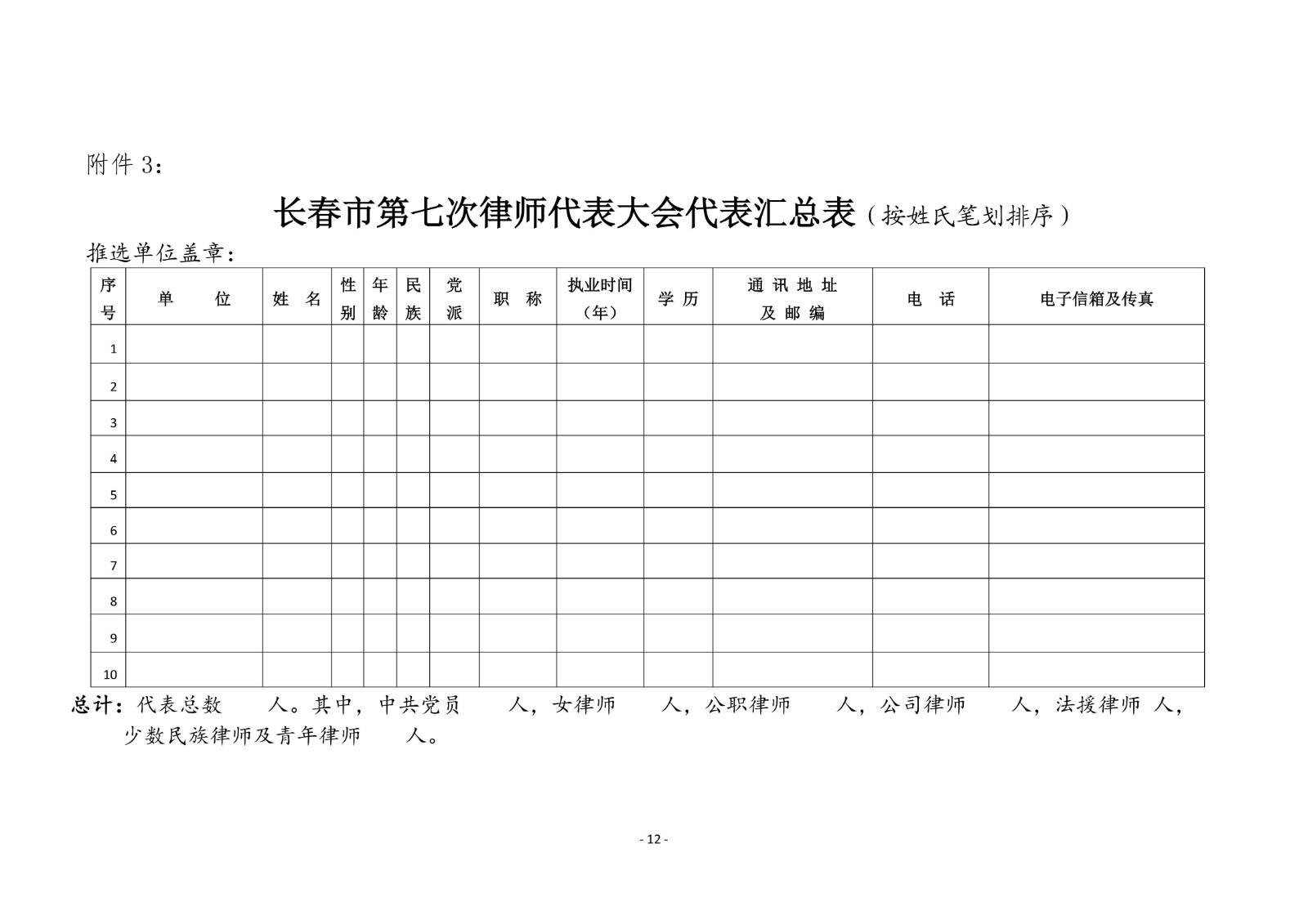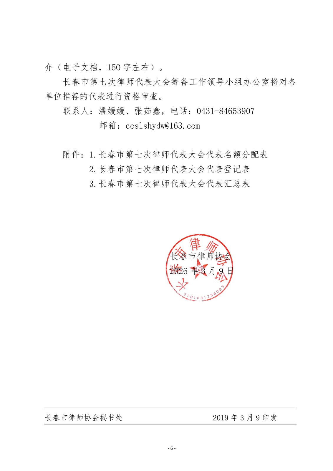 关于推选长春市第七次律师代表大会代表、 理事候选人、监事候选人的通知