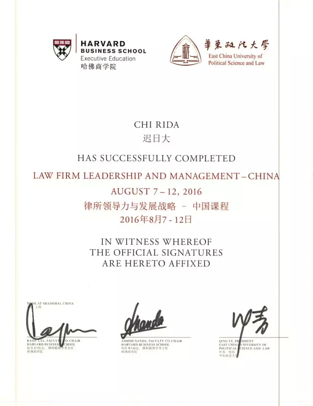 吉林功承律师事务所创始合伙人迟日大参加哈佛商学院“律所领导力与发展课程-中国课程”