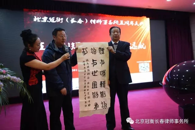 8时58分,北京冠衡(长春)律师事务所五周年庆典正式开始。主持人宣读了中央司法体制改革领导小组办公室原副主任、中央政法委政法研究所原所长黄太云;中国刑法学研究会名誉会长高铭暄;中国政法大学诉讼法研究院名誉院长、中国政法大学法律实证研究中心主任樊崇义等法学界、新闻界精英给北京冠衡(长春)律师事务所发来的贺信。