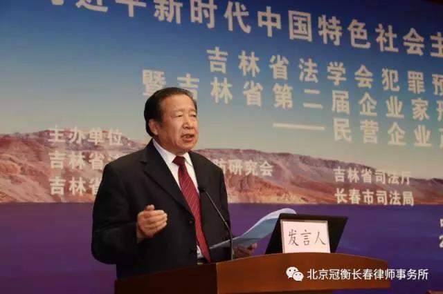 为贯彻落实党的十九大会议精神,学习习近平新时期中国特色社会主义思想精髓,10月29日,吉林省法学会犯罪预防研究会与北京冠衡(长春)律师事务所、吉林省司法厅、吉林省工业和信息化厅、吉林省工商业联合会、吉林省社会组织管理局、长春市司法局、吉林大学法学院在长春联合举办了主题为“民营企业产权刑事法律?;ぁ钡摹凹质》ㄑЩ岱缸镌し姥芯炕?017年年会暨吉林省第二届企业家刑事法律风险防范高端论坛”,吉林省副省长金育辉出席大会并致辞。
