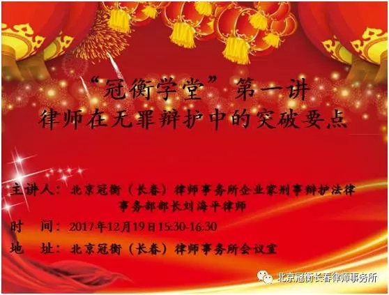 北京冠衡(长春)律师事务所 “冠衡讲堂”第一讲开讲
