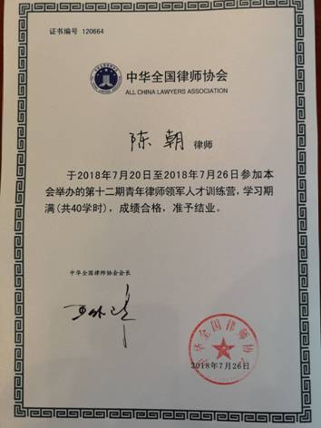 走大道、识大局、明大德、成大业——陈朝律师参加全国律协青年律师领军人才训练营